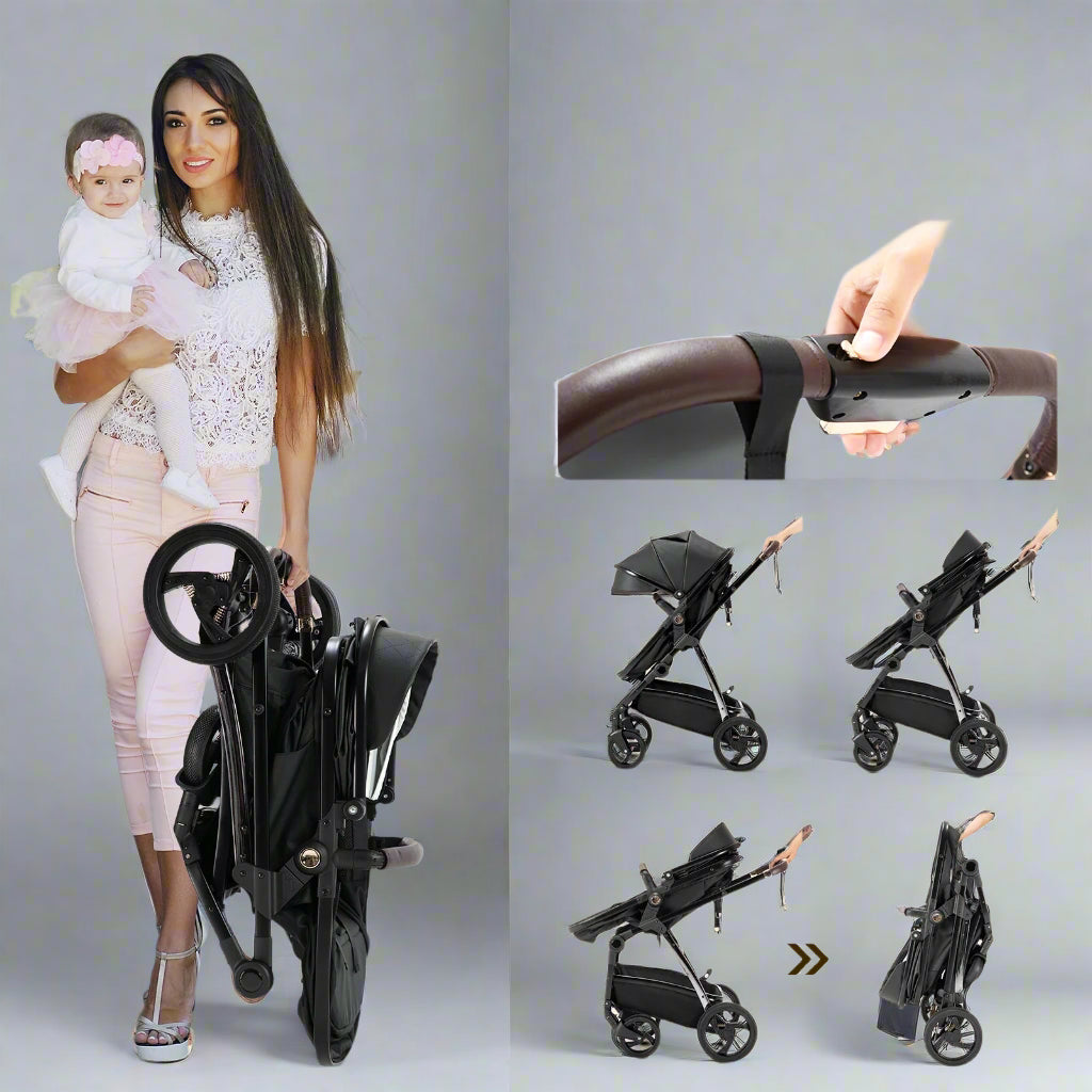 Luksus Læder Barnevogn 3 i 1